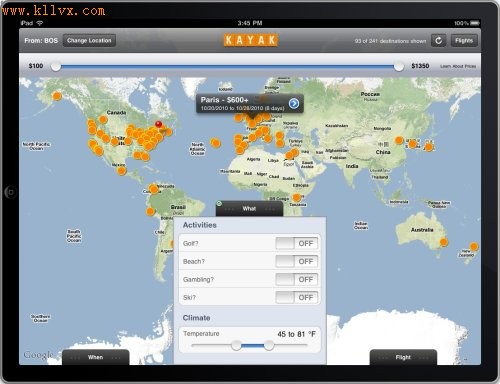 时间:2010-7-16 10:58:07 来源:环球旅讯| 环球旅讯7月16日消息:Kayak在iPad上的应用程序广受欢迎,三个月内下载量已经超过170,000,最近他们在iPad上又推出了地图式搜索工具Kayak Explore。 Kayak Explore,是Kayak今年5月发布的地图式搜索工具,尽管业界人士认为它与Amadeus的购物引擎 Affinity Shopper、Cartrawler与诺基亚的合作项目及其他项目有相似之处,但是仍获得高科技消费者(如iPad手机用户)的一致好评。 这些地图式搜索工具有一个不足之处就是有时候由于鼠标和网站的原因而无法很好地浏览到一个大些的地图。 使用触摸感应和全屏设备(如iPad)或许可能帮您解决这些困扰。 Kayak首席市场官Robert Birge表示:“在未来几个月内,新的酒店搜索系统也即将在iPad的Kayak应用程序中发布。”(Amy编译) |