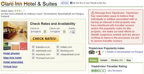 时间:2010-11-7 11:20:04 来源:环球旅讯| TripAdvisor对一家爱尔兰酒店采取了惩罚措施,原因是该酒店明显让其员工在这个用户评论网站上发布该酒店的正面评论。 这家位于爱尔兰Dromoland的Clare Inn Hotel & Suites被贴上了“红色警告”(Red Badge)——这是一个红色的大文本框,显示在该酒店的TripAdvisor页面上,以提醒用户注意相关酒店评论的真实性,因为它们有可能是酒店员工发布的。 警告语写道: “TripAdvisor有理由相信,从属于该酒店或与该酒店有利益关系的个人或团体,对该酒店的旅行者评论和/或欢迎度指标进行了干预。我们将尽力确认可疑内容,并将始终致力于提升获取旅行者评论流程的质量。” The Clare Inn是Lynch Hotel Group的旗下酒店,后者在爱尔兰拥有七家酒店。 该事件之所以被曝光,是因为爱尔兰的广播公司RTE收到一封来自该酒店管理人员发给数名同事的邮件,要求他们发表该酒店的正面评论。 根据《贝尔法斯特电讯报》(Belfast Telegraph),该邮件如下: “我们制定了一项计划,要求本邮件中提到的所有人都要发表一篇入住Clare Inn的正面评论。你必须用家里电脑或者在有网络服务的咖啡厅中进行这项工作,而不要通过Lunch办公室的电脑,否则IP地址将被监测到。我建议你们不要跟团队中的人讨论这件事情。正常来说,这并不是一件我们认同的工作,但目前关于Clare Inn的评论让我们没有选择的余地。请不要使用酒店用语,否则这些评论将产生反效果。” Clare Inn暂时未对该事件发表评论。 一名TripAdvisor官员称,“红色警告”这种惩罚措施只对TripAdvisor上45万酒店的“极小部分”使用过——也就是说,使用概率非常小。 受质疑的评论已在本周从该酒店页面上移除。 “虚假评论不仅侵犯了我们的服务条款,并且有违商业道德,而且根据2009年欧盟《不公平商业行为指令》,这种做法也违反了包括英国和爱尔兰在内的许多国家的法律。” 对酒店的处罚不仅如此。TripAdvisor表示,该公司还采取了“其它几个手段”,对那些“企图投机取巧”的酒店给予惩罚,包括降低在TripAdvisor的受欢迎指数,并取消获评“Choice奖”、发布新闻稿以及排在前十位的机会。 酒店圈子中已出现对TripAdvisor系统的焦虑,而这次Clare Inn的“红色警告”灾难进一步煽动了这种情绪。 TripAdvisor已遭到由网誉管理服务公司Kwikchex发起的共同起诉——后者专门报道酒店、度假租赁和目的地网站上的用户中伤评论。 针对TripAdvisor评论的最佳处理方式,目前正掀起了一场激烈的争论。(Gary编译) |