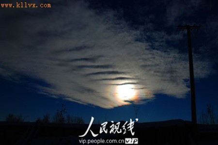 人民网阿勒泰11月21日电 11月20日上午十一时左右,新疆阿勒泰市出现“七彩祥云”奇观。引得市民纷纷驻足观看。 据了解,自11月7日以来,新疆阿勒泰降下了今冬的第一场大雪,20日天气转晴后,由于云彩中水气较重,在阳光的照射下出现“七彩祥云”奇观。 |