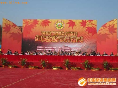 2010广西百色(德保)红枫旅游节 11月19日至21日,2010广西百色(德保)红枫旅游节在德保县隆重举行。 本届旅游节主要活动内容有大型迎宾晚会、德保矮马骑兵竞技表演以及舞龙、舞狮、舞象、走台阁等民俗文化巡游展示活动,广西德保红叶森林公园、吉星岩景区和曼贝侬景区开放仪式,首届中国(百色·德保)民族医药养生文化旅游发展论坛等。 |