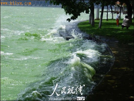 时间:2010-12-6 10:26:46 来源:乐途游民部落 2010年11月29日,云南昆明滇池蓝藻大量繁殖,在昆明滇池海埂一线的岸边,湖水如绿油漆一般。 2010年11月29日,云南昆明滇池蓝藻大量繁殖,在昆明滇池海埂一线的岸边,湖水如绿油漆一般。 因近日气温回升,云南昆明滇池蓝藻大量繁殖,在昆明滇池海埂一线的岸边,湖水如绿油漆一般。绿浪翻滚的湖水涌向岸边,带来一阵阵腥臭气味。滇池是云南九大高原湖泊中污染最严重的一个,现在水质为劣 |