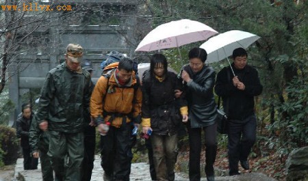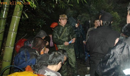 武警官兵护送迷路大学生出山。 相关专题: 复旦学生黄山遇险
