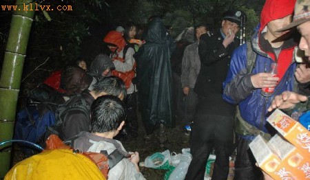 武警官兵护送迷路大学生出山。 相关专题: 复旦学生黄山遇险