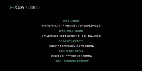 如诗如画山里江南,古风古韵黔中安顺,2015年,安顺凭借海“辣”百川的美味入选短线饕餮类年度路线;2016年,它又以“黄龙屯格”的360度休闲入选中线休闲类年度路线;这是一个自驾到访、平安顺意的地方。 2015年度中国自驾游路线评选短线饕餮类 2016年度中国自驾游路线评选中线休闲类 6月6日,2017年度中国自驾游路线评选于安顺正式启动,贵州省旅游发展委员会及各州市旅游局领导、评选组委会主任委员、评选意见领袖、中国自驾百强俱乐部代表及全国主流媒体到场见证了这一自驾游盛事。 安顺市市委副书记、市政法委书记、黄果树旅游区工委书记朱桂云女士为2017年度中国自驾游评选贵州安顺启动发布会致欢迎辞 贵州省旅发委副巡视员吴迈先生与中国自驾游路线评选总架构师、爱驾传媒CEO李克崎先生代表双方签署2017中国自驾游场景实验合作备忘录 贵州省12个地市州旅游行政部门负责人上台共同启动2017贵州省自驾游路线评选 贵州路线评选流程