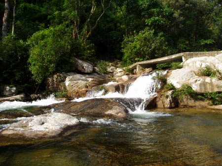 ![]() 小妹湖和大理瀑布 从林业局北上4千米就可到小妹湖,这里原是由水库形成,水面有50公顷,四周青山环抱,湖中还有几座翠峰点缀,波光粼粼。继续前进8千米,然后顺小路走六、七分钟就到达大理瀑布之一的姐妹潭瀑布,顺岩壁朝上游不过十分钟就是托南日瀑布。姐妹潭瀑只有四、五米高,分左右两条;托南日瀑为三叠瀑,状如马尾,落差70多米,气势壮观,轰鸣贯耳。