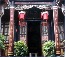 书房西边是放置祖先牌位的灵堂。这里有许多精美的神龛和有关祖先生卒的碑刻。每块碑刻都要花费一个石匠三个月的工夫。然而,引人注目的还是庄园里随处可见的石柱子的底座。石柱子的作用是支撑房顶。这种建筑方式使石柱免受潮湿的侵蚀。 这些六边形的底座是由多年形成的水晶石建造的,每个面上都刻有花卉和人物图案。最富有想象力的是一个中间镂空雕刻出来的人物,似乎整个石柱是由他们支撑起来的,人物雕刻栩栩如生,活泼可爱,整个结构又不失平衡。 不少有关民间传说故事的石雕在大院里随处可见,经历了上百年的风吹雨淋,这些雕刻依然完好无损,雕刻的字体、轮廓依然醒目、美观。这要归功于选料的精细考究。