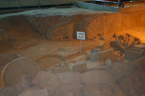 虢国博物馆位于三门峡市区北上村岭,是在西周虢国车马坑遗址上建立起来的一座专题博物馆。该馆始建于1984年,占地面积 虢国车马坑,是1956年配合黄河三门峡水利枢纽工程建设时,在上村岭发现的,由国家黄河水库考古队发掘,经原全国人大常委会副委员长、中国科学院院长郭沫若的建议,予以原地原状保护。 此坑为长方形,坑底南北长15米,东西宽3.82米,深4.1米,坑内保存有战车5辆,战马10匹,由北向南排列。车为木质结构,独辕双轮,车上施漆,由车轮、车箱、车辕等部件组成,保存完整,形象清晰。