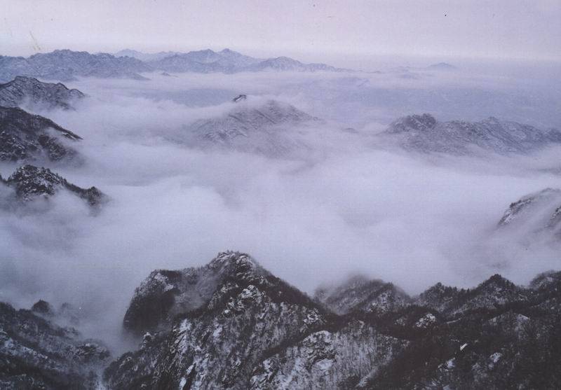(8)鳄鱼出海:山石形如鲤鱼。 (9)东、西凤凰台:过"鳄鱼出海"前行,即至东、西凤凰台。在两凤凰台之间的峡谷风口处可观云海山色。 (10)仙人桥:位于东、西凤凰台之间的峡谷风口处。"仙人桥"由一野生大榆树伸出的两个长横枝构成,游人过桥时,需手扶上面一枝,脚踩下边一枝,晃晃悠悠,别具情趣。 (11)竞秀峰:过仙人桥前行,至竞秀峰。这里奇松密布,景色独秀。 (12)三只靴:闪过竞秀峰的山嘴,沿山脊向北延伸,在天然观景台上可见倒置在峰巅的三只靴,形态栩栩如生。传说西汉末,刘秀被王莽追赶,因奔逃仓皇,他和爱将邓禹凉晒的三只战靴失落在这里。 (13)杜鹃仙宫:过竞秀峰前行,在官石垴东北的杜鹃林中修建,为一小巧玲珑的民族式歇山式重檐建筑。宫中塑杜鹃仙子像,营造一份美妙的神话色彩,特别是在云雾缭绕时,犹如仙境一般。 (14)官石垴:俗称光石垴。自竞秀峰而上走过官石垴下的悬崖绝壁,斗折蛇行,来到官石垴下。但见山体高大雄伟,孤峰之上有一光滑的圆石,又名风动石。此石如横空飞来,稳座峰颠,人推、风吹而动。传说此峰为真武祖师修身练武之地。 (15)黑松林:继续前行至黑松林,这里林景独特,古木参天,为旅游区增添了几分神密色彩。 (16)万丈石瀑:穿越黑松林,至万丈石瀑。石瀑位于真武顶下,因石壁的表层形态酷似水流,扬扬洒洒下泻如同天降,堪称神州一绝。 ![]() (17)风洞:位于万丈石瀑顶上,又名"一线天"。此乃一处天然洞穴通道,长15米,高6米,宽度最窄处只有50