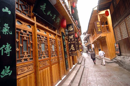 ![]() 原汁原味的楚巫文化、韵味独特的凤凰土话、别具一格的苗族服饰、苦辣咸酸的饮食习惯,还有原始戏剧活化石傩堂戏、地方风味十足的阳戏、散发着泥土清香的文茶灯,以及玻璃吹画、蜡染、纸扎、苗族银饰等格调清新高古的民间工艺,构成凤凰独具特点的民族民俗风情。