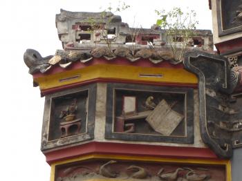 城墙外是半边街的吊楼,依次往前是大埠桥的石拱、万寿宫的高墙、关圣殿的飞檐、石嘴垴的石壁以及唐兴寺、唐兴桥、窑湾等,凡三街六巷,均形貌逼真。左部为杨梅洲图景,市街房屋,别具风格。