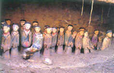 长 27 米,宽 3 米,间距 5 米,坑内各有一个步兵方阵和一个车兵方阵,每坑约有陶俑 1400 件;三条俑坑的东端有一条南北方向的警卫俑坑,出土了数十件陶俑;在西北 125 米处,还有五和 六号坑,坑内有少量的骑兵俑和陶马。这些俑坑俨然是一支布局紧凑、合理的地下军阵:三列主力纵队分为两列,前列是排列密集的步兵前锋,后面是浩荡的车兵方阵,在主力“锋”阵中间的制高点处,站着四匹膘肥体壮的战马,其后站着一位形象威仪的将军俑,它是这支部队的指挥官,身后簇拥着一队甲士俑,构成军阵地指挥中枢;距主阵右侧不远处是由两条骑兵俑组成的轻骑兵方阵,形成军阵的右翼,古代军阵锋、本、卫、翼页码:[1] [2] [3] [4] 第2页、共4页