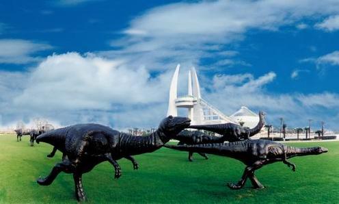 中华恐龙馆共分展示、游乐、科研三大功能区,馆内陈列有永川龙、马门溪龙、山东龙、巴刻龙、霸王龙等36架各个地质年代的恐龙化石骨架,中华龙鸟化石以其珍贵的学术研究价值已成为恐龙馆的镇馆之宝。各展示厅通过逻辑路线,互相关联,运用高科技声、光、电以及影视成像、卡通动画、网络游戏、科技制作等手段,是中华恐龙馆突破了传统的"博物"观念;设计师以生物演变史为背景,重点突出恐龙从生存、繁衍、演化直至毁灭的发展历程,揭示出人类必须保护生态、保护环境这一生态主体;别具匠心的运用瀑布、山岩、海洋、丛林、洞窟等仿真手段,再现古地质年代特有的生存环境,由此构筑各展厅独特的艺术氛围,此外,模仿美国好莱坞影城侏罗纪公园的“穿越侏罗纪”和4 ![]()