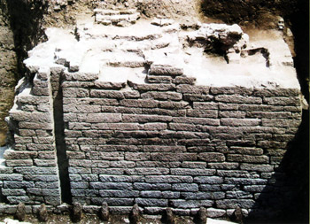 附近为五代城墙马面(城墙女墙上的战棚),北宋、南宋的瓮城门道,进出城门的砖铺路可以看出宋代时我国已开始使用砖砌券顶式圆形城门洞,替代了在此以前的木构过梁式方形城门洞,这是因为宋代火药的发明,对作为战争防御功能的城门也是提出了更为坚固的要求。