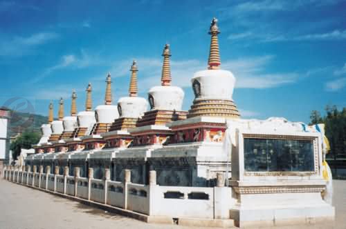 该寺后经多次扩建,清康熙五十年(1711年),青海蒙古郡王额尔德尼布施黄金1300两,白银1万两,将屋顶改为馏金铜瓦。清乾隆五年(1740年),藏王颇罗鼐布施巨款安装了殿脊饰品。殿内塔前陈设金灯、银灯、铜灯、象牙、古瓶等饰品和法器。莲台上有