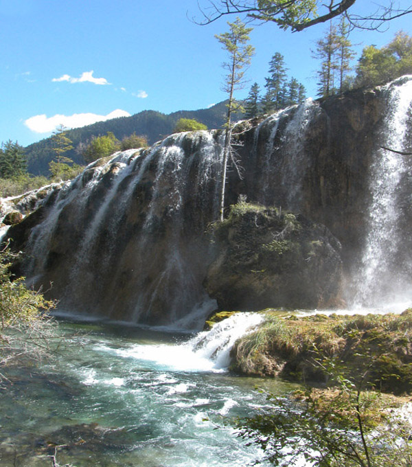 ![]() 也许是蛟龙皈依、海中太平的缘故,这里时有不少漂亮的天鹅和多情的鸳鸯小住。如果有幸,在这里可以欣赏野鸭群游和天鹅飞舞的景象,使你备增游兴。 树正群海 树正群海由二、三十个大小海子呈梯田状群集而成,前后连绵数里,上下高差近百米。柏、松、杉等翠绿树木密布于湖泊周围。湖水自上游翻堤而过,在树丛中穿流,跌落在下一层的海面形成叠瀑,激起银色的浪花,喧闹着直奔下游而去。这一道道的叠瀑与激流串起树正海中的各个海子,动静相隔。群海不仅高低层次分明,色彩也是层次分明,绿树绿得青翠,蓝海蓝得浓稠,叠瀑与水花白得轻盈,尤其是那绿中套蓝的色彩最为动人。 树正瀑布 树正瀑布由首尾相接的众多梯湖的飞瀑,水大势猛,勾连迥环,瀑布下泻深沟,犹如千军万马擂鼓摇旌,吼声如雷。梯湖堤埂之上,耸立着一株株、一丛丛高原特有的各种灌木,扎根于水底,傲立在激流,常年经受流水的冲击而不倒伏,不烂根,风姿绰约,形成特殊的植物群落和世间罕见的自然奇观:碧水穿过丛林,漫过堤埂,跌落层层瀑布,恍若碎玉飞花!更有河滩上的丛丛沙棘沙柳,其主根深扎在碳酸岩缝里,却还有许多一米多长的红色须根,流水将它们梳理在一起,恰似一大把红马尾;红须根随波摆动,上下浮沉,看去活象透明碧玉中流动的红玛瑙……抬望眼,仰天观云,侧耳听风,更有那岸边大片大片粉红色的荞麦花,高低错落的藏族民居,还有那早出晚归的牛群羊群,袅袅炊烟,声声犬吠……树正瀑布的一切,好象是幽深的,宁静的,世外桃园的,却又是生机盎然,出神入化! 二、日则景区:由日则沟下半段的诺日朗瀑布、诺日朗群海、镜海、珍珠滩、五花海、熊猫海瀑布、熊猫海、箭竹海组成,是九寨沟风光的精华所在。 镜海 离开珍珠滩,沿着环山公路下行,有一片宽阔无比的山谷。山谷空旷,草木丛生,中间一缕清泉婉蜒滑过,充向下游的镜海。小河旁有几户民居,如世外桃源。山谷两侧是雄伟挺拔的山峰,秋天来临时,秋色染林,仿佛有一枝神厅的画笔,肆 |