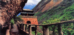 剑门蜀道风景名胜区位于四川省绵阳地区。是在连绵不断的秦岭、巴山、岷山之间,以“蜀道”为纽带的风景名胜区。1982年被定为首批国家重点风景名胜区。 秦岭巴山连绵起伏,峭拔险峻,构成了川陕交通的一大屏障,自古即以“蜀道难,难于上青天”著