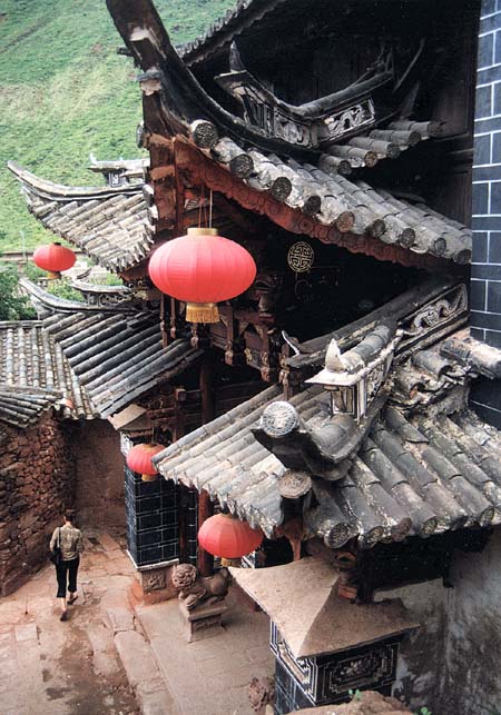 ![]() 古巷幽幽,木刻花窗,雕梁画栋上附着的蛛网尘丝,青石板路上的深深蹄印,无不在诉说着它的历史与曾经的辉煌……与丽江古城的小桥、流水不同,黑井古镇则多了几分古之悠悠,情之绵。龙川江穿城而过,红砂石铺就的汉代马帮道与城中宽不过三尺的街巷相依相偎。月朗人寂的晚上,红砂石砌成的石碑坊漠然矗立,五马桥边的万家灯火,叙说着一个遥远深邃的繁华世界。绵绵秋雨中,伍家大院风化的石柱脚、黑井文庙中斑驳的石墙都在诉说着一种破而不衰的风骨。