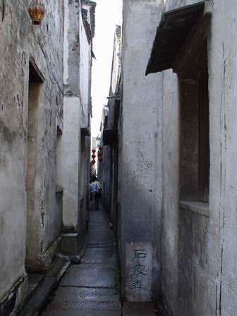 古镇在明代以前大户人家有唐、王、赵、陆四姓,明以后又有倪、蒋、朱、卜、陆等大户,故多建有深宅大院。宅深形成长长的弄,镇上现仍长短不一的弄122条,其中百米以上的宅弄有5条,最有特色的一条露天弄名叫石皮弄。 石皮弄是王家子孙两宅第之间形成的一条弄,地面用168块石板铺成。全长68米,最窄处仅0.8米。<