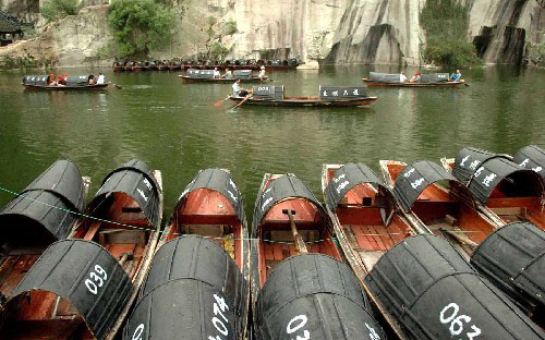 是富有历史意义的胜迹,孙中山、陶成章、徐锡麟、鲁迅等都曾到过东湖游览或商量革命大计。陶成章遇难后,绍兴人民为纪念英烈,在东湖建立了陶社。1916年八月,孙中山先生还亲临陶社致祭。建国后,毛泽东等党和国家领导人曾多次到过东湖。郭沫石在东湖还留下诗歌一首:“箬篑东湖,凿自人工。壁立千尺,路隘难通。大舟入洞,坐井观空。勿谓湖小,天在其中。”游览东湖的游客不仅会被如画的景色所吸引,而且还会被劳动人民手足胼胝创造的如此奇迹所感动。  东湖是外地游客在绍兴参观的主要景区之一,乘坐乌篷船是湖中游览的特色,初次到东湖的人可能因此而玩个心跳。除在湖中观光外,人们还可以上山。山顶有茶园和茶室,还页码:[1] [2] [3] [4] [5] 第4页、共5页