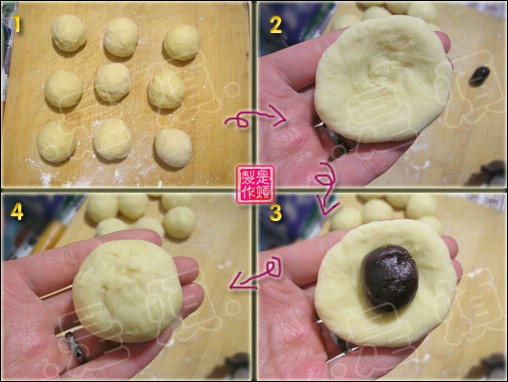 关键还是发酵这一步很重要的呢! ![]() ---- screen.width/2)this.style.width=screen.width/2;' border=0>图1:将面团等份分割,然后滚圆拉~~~ 图2:取一个小面团,按压开来~ 图3:放上适量的红豆沙 图4:收口,并将其滚圆... 页码:[1] [2] [3] [4] [5] 第2页、共5页