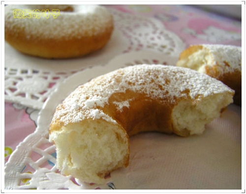 ![]() 甜甜圈大致分为蛋糕甜甜圈和面包甜甜圈,顾名思义,前者是用蛋糕方法,加疏松剂让面团松软,制作方法简单,易学易做.后者将面团发酵,使做成的面包圈具有面包般有嚼劲,是最道地的甜甜圈做法. 材料: A:高筋面粉836克,酵母37克,盐10克,水518克