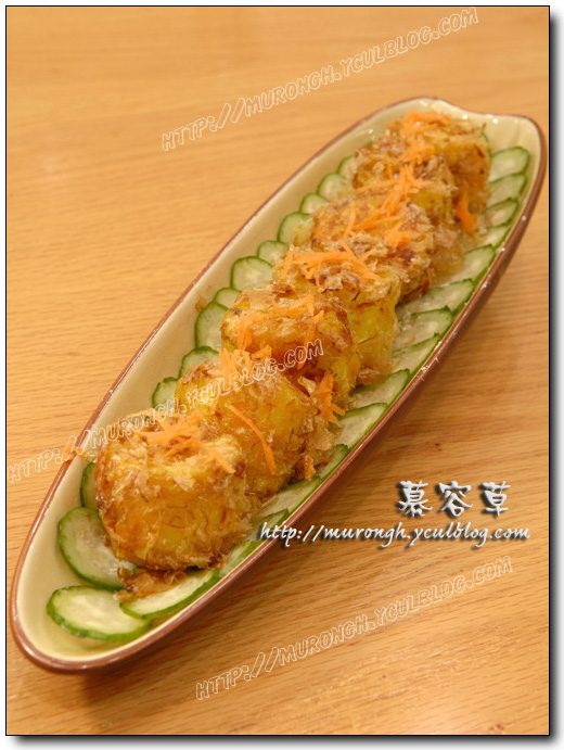 ![]() ![]() 扬出豆腐是每个日餐店都有的东西,名字来源不详,大概就是煎过的豆腐、柴鱼片,但是每家的做法不同,炸过的东西比较香,于是我就做了以炸为主的当宵夜,呵呵,肉肉啊~~~就是这样长到俺家那口身上滴~~ 材料:豆腐(我用了玉子豆腐)、