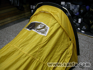同以前的风格一样新款同样拥有可以在帐篷里对外面侦察的观察窗,透明材质为美国进口的PU皮材质,在低温下也不会出现发脆现象,而且透明度好,可以在野外的夏夜,进行观星活动呵呵 新款的通风口开在头部的最上端,这样的设计更加有利于使热空气更好的排出,使帐内保持舒适,这样观察增高效果更为明显。